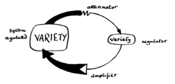 He already introduced, in Talk I, the concept of variety – the number of states a system can get into. Even simple systems have mathematically vast variety, but that can be managed as long as it is matched by the variety of whatever is regulating that system. This is known as Ashby’s Law of Requisite Variety – the fundamental law of cybernetics.